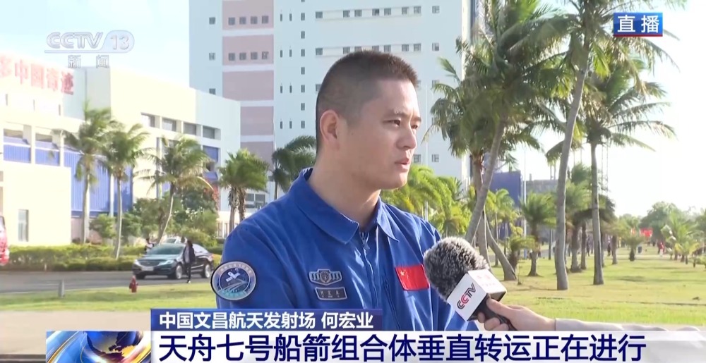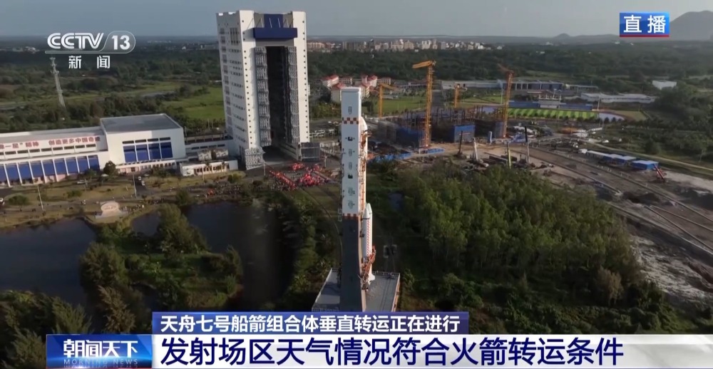 天舟七號船箭組合體垂直轉(zhuǎn)運(yùn)正在文昌航天發(fā)射場進(jìn)行