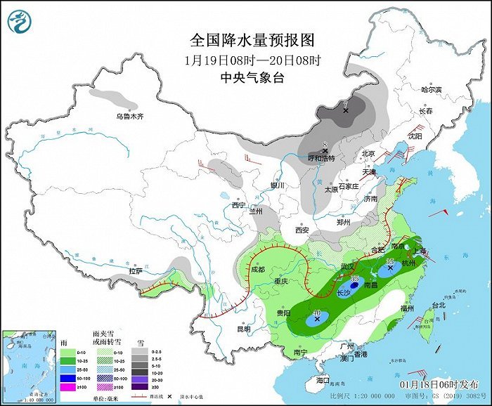 中央氣象臺(tái):今明兩天中東部雨雪持續(xù) 20日起寒潮將強(qiáng)勢入侵