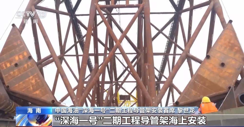 中國海油“深海一號”二期工程導(dǎo)管架海上安裝首席 黎世龍:“深海一號”二期工程導(dǎo)管架海上安裝采用滑移下水方式進行。這種方式是利用導(dǎo)管架自身重力并配合液壓千斤頂助推,使導(dǎo)管架從駁船平穩(wěn)地滑入海中,再通過起重船將導(dǎo)管架吊裝扶正坐底,從而實現(xiàn)安裝就位。