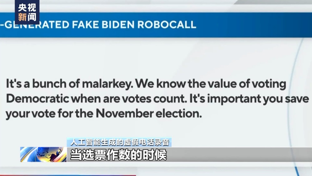 人工智能生成的虛假電話錄音:真是一派胡言,當(dāng)選票作數(shù)的時候,我們就能知道民主投票的價值了。你要把選票留到11月再投。