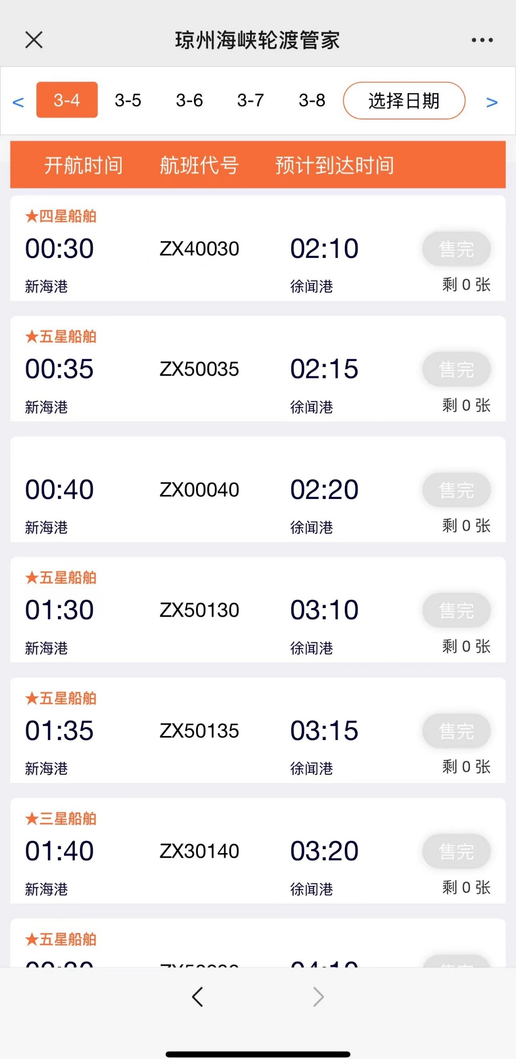 記者18日晚從“瓊州海峽輪渡管家”上查詢發(fā)現(xiàn),3月5日之前從??谛阌⒏?、新海港出港前往廣東湛江徐聞縣的新能源小汽車輪渡船票均顯示售罄;3月5日當(dāng)天及之后的票暫無法購買。劉先生說:“這已經(jīng)是正常上班的時間了,至少我們看到周邊的這些新能源車跟初七、初八之前的車輛是相等的;跟去年或者往年比的話,滯留車還是比較多?!?/p>