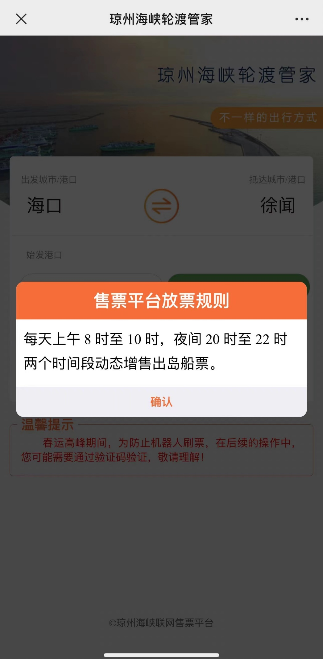和行程相對自由的劉先生不同,原計劃2月16日搭上輪渡、2月17日回到家里準(zhǔn)備上班的成都游客陳女士和愛人鄧先生,因?yàn)闆]能如約搶到離島輪渡新能源車的船票,不得不向公司多請兩天年假、延遲返崗。陳女士表示:“搶票有一點(diǎn)技巧性,當(dāng)時我搶的是2月9日返程的票,那一天票還比較多,后面放票出來的時候我又改簽到了2月18日,改簽成功大概是2月10日或11日。放票的時間沒有太多規(guī)律性,說的是早上8-10點(diǎn)和晚上8-10點(diǎn)搶票,但實(shí)際上我搶到票的時間都是中午12點(diǎn),一整天都在刷票。”