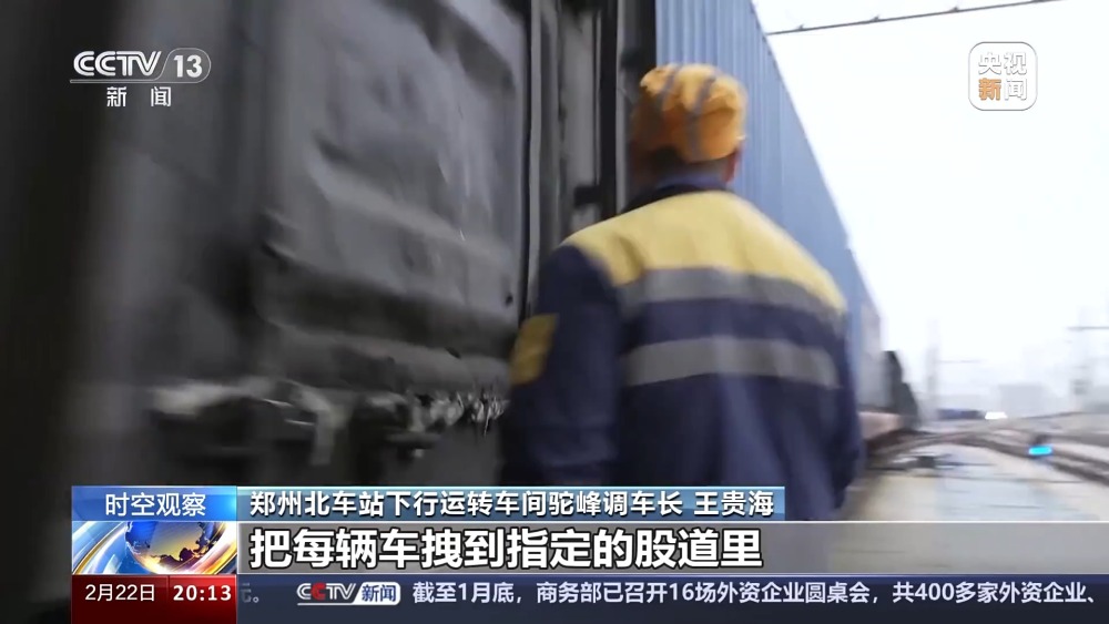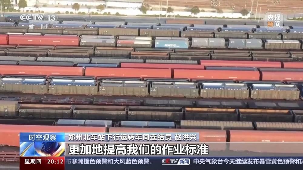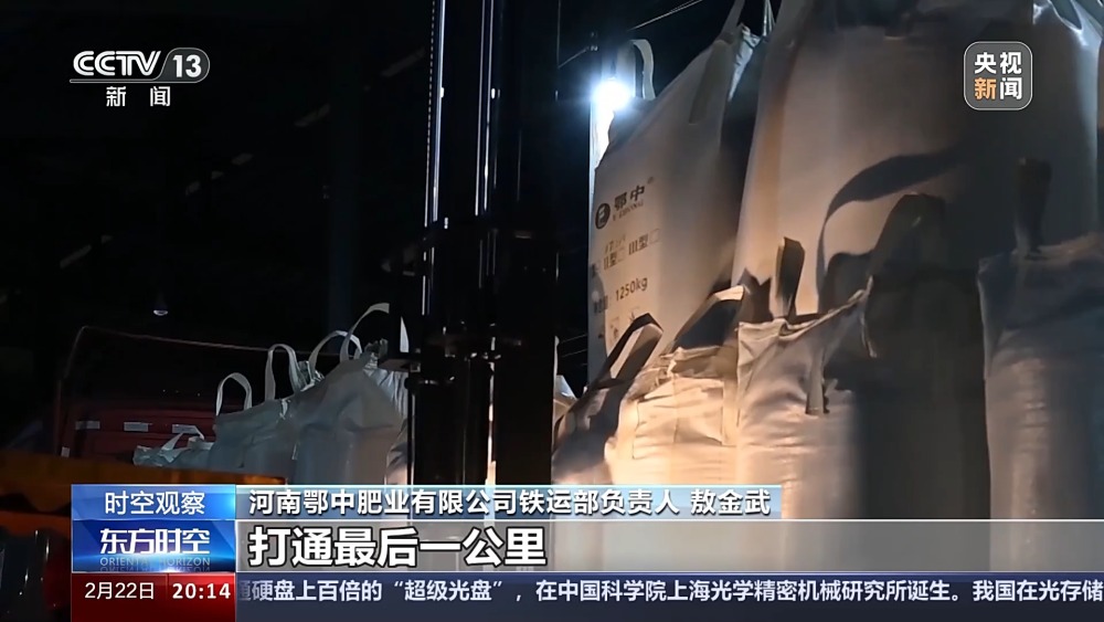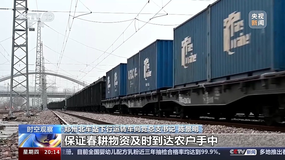 總臺央視記者 蔣樹林:這里是鄭州北車站,也是全國作業(yè)量最大的編組站,大家看我眼前這個車?yán)锩嫜b的就是當(dāng)下春耕所急需用的化肥原料,作業(yè)還在加班加點地往前推進(jìn)。