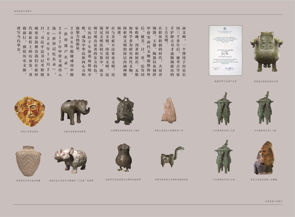基本陳列將長期對公眾開放,展示幾代殷墟考古人接力前行、不斷求索,取得了一次又一次重要發(fā)掘成果,對夏商都邑的深入研究,為不同時(shí)期不同區(qū)域的商文化研究提供了對比標(biāo)尺。眾多首次亮相的各類珍貴文物再現(xiàn)了商朝繁盛的城市文明,完善的禮樂文明、發(fā)達(dá)的青銅文明、燦爛的文字文明以及高超的科技文明。全面系統(tǒng)地展現(xiàn)了我國商代晚期都城的風(fēng)貌,讓全世界看到一個(gè)中華文明早期發(fā)展階段最為輝煌的時(shí)代——大邑商。