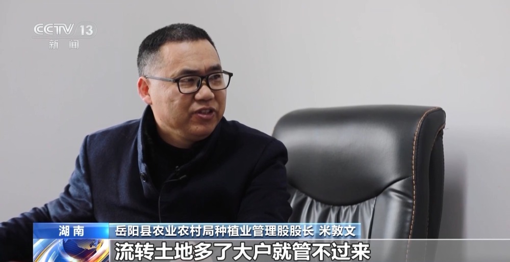 岳陽縣農(nóng)業(yè)農(nóng)村局種植業(yè)管理股股長 米敦文:流轉(zhuǎn)土地多了,大戶就管不過來,請人又保證不了畝產(chǎn),還要增加開支,大戶的心氣也跟著往下掉。所以還是不能搞貪大求多那個(gè)老一套,還是要鼓勵(lì)大戶在耕種上精耕細(xì)作,提高產(chǎn)量,增加效益。
