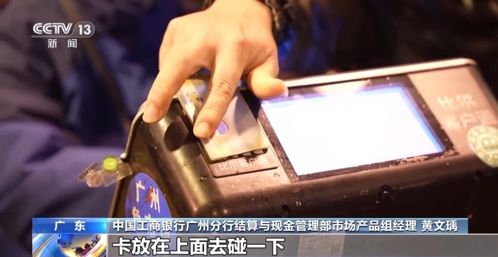 中國工商銀行廣州分行結(jié)算與現(xiàn)金管理部市場產(chǎn)品組經(jīng)理 黃文瑀:卡放在上面去碰一下,做一個身份識別,然后再把商品放在秤上面去稱重??梢钥吹秸麄€交易的總金額是多少,實時同步到我們這邊,去完成買賣雙方賬戶資金的轉(zhuǎn)賬。