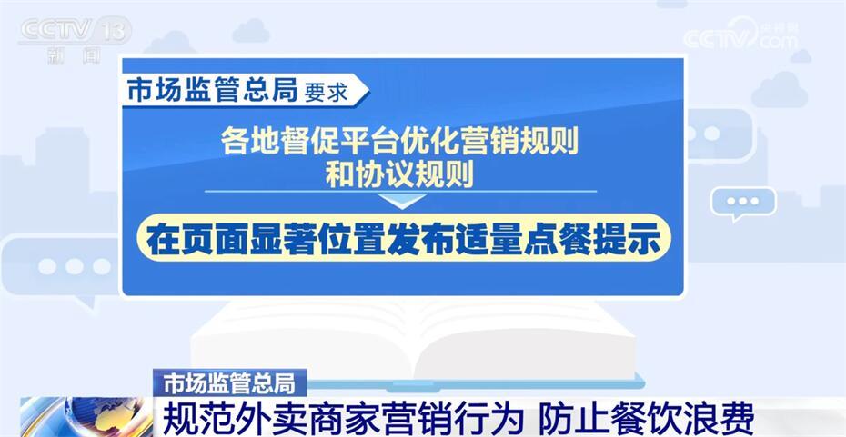 市場(chǎng)監(jiān)管總局要求各地督促平臺(tái)優(yōu)化營(yíng)銷規(guī)則和協(xié)議規(guī)則,在頁(yè)面顯著位置發(fā)布適量點(diǎn)餐提示;鼓勵(lì)平臺(tái)健全激勵(lì)機(jī)制,推動(dòng)商家開發(fā)、提供、推廣小份餐品,合理設(shè)置餐品起送價(jià)格,優(yōu)化滿減湊單機(jī)制,不將主食納入滿減優(yōu)惠展示范圍,鼓勵(lì)使用食安封簽。線上線下、同頻同步開展防止餐飲浪費(fèi)與食品安全監(jiān)督檢查,持續(xù)開展“隨機(jī)查餐廳”行動(dòng)。對(duì)造成明顯浪費(fèi)、嚴(yán)重浪費(fèi)且拒不改正的,依法嚴(yán)厲處罰并公開曝光。