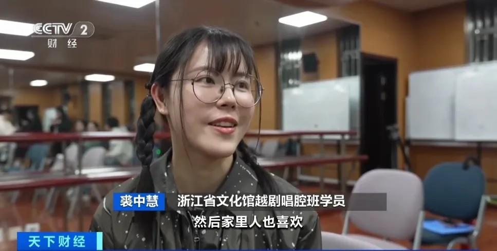 浙江省文化館越劇唱腔班學員 裘中慧:自己很想來體驗一下越劇,家里人也喜歡,主要想學會了唱給家里人聽。