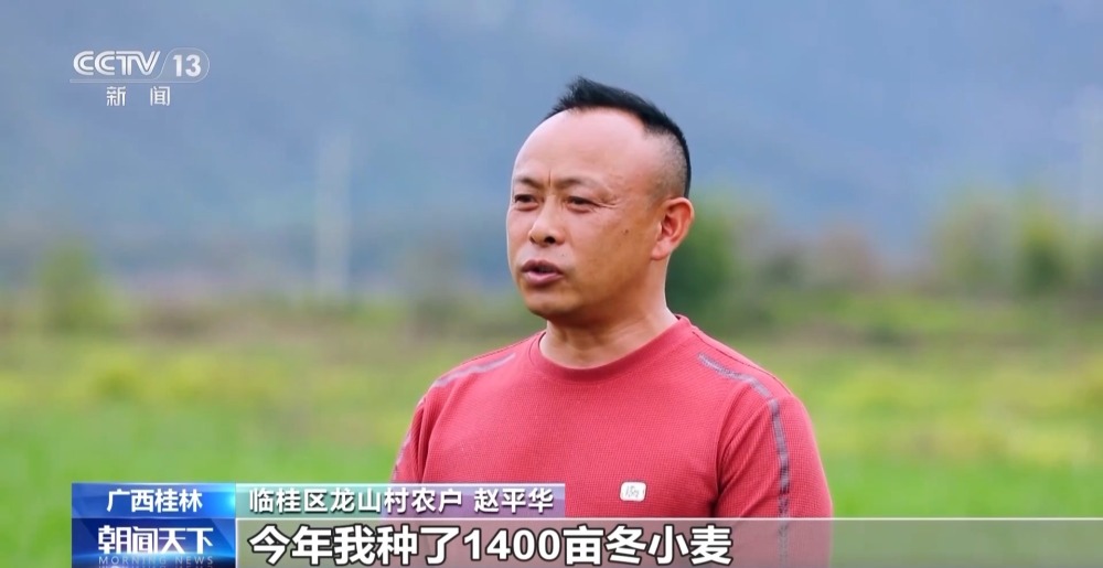 臨桂區(qū)龍山村農(nóng)戶 趙平華:今年我種了1400畝冬小麥,現(xiàn)在進(jìn)入抽穗期,4月中旬進(jìn)入揚(yáng)花期,接下來我要加強(qiáng)管理,爭取今年有個好收成。