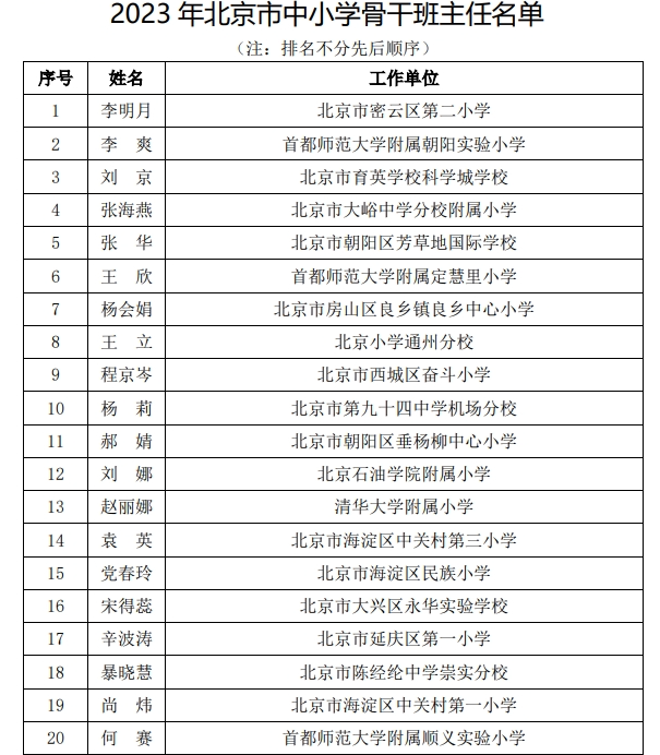 2023年北京市中小學骨干班主任、幼兒園骨干主班教師名單公布