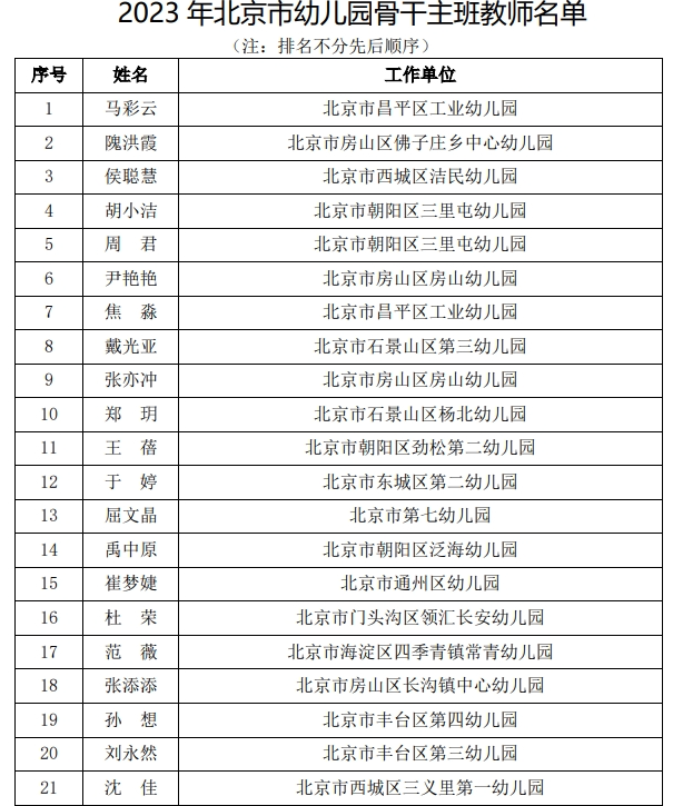 2023年北京市幼兒園骨干班主班教師部分名單(圖源:北京市教委官方網站截圖)