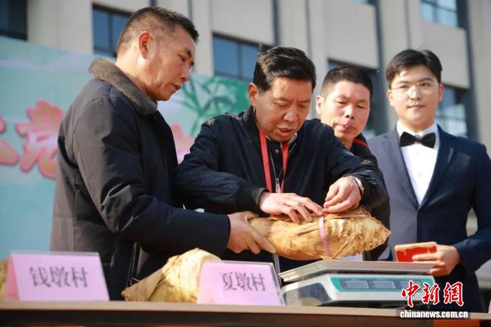 中新網(wǎng)南平1月19日電(廖敏愷 宗治明 陳沁林)“圍徑46.2厘米,重5.55斤,夏墩村獲得第一名!”隨著專家評定結果揭曉,福建南平順昌縣嵐下鄉(xiāng)郭巖廣場瞬間沸騰,游客紛紛舉起手機記錄“筍王”風采。種植戶劉樂明難掩激動:“我們的筍來自自家山林,自然生長、品質上乘!”