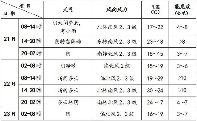 預(yù)計23-28日期間,大部分時間本市天氣為晴到多云。受冷空氣影響,23日天空云量較多,夜間山區(qū)有陣雨,降雨對城區(qū)影響不大;24-26日多3、4級偏北風(fēng)。該期間氣溫呈上升趨勢,白天最高氣溫24~34℃,夜間最低氣溫15~20℃。