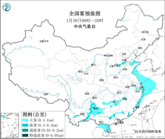 此外,1月30日早晨至上午,河北南部、山東東部、浙江北部和東部、福建東部、湖南中部、江西中部、貴州中南部、云南中部和東部、廣西北部和南部、廣東北部和西南部、海南北部等地的部分地區(qū)有能見度不足1公里的大霧天氣,其中,河北南部、浙江北部、湖南中部、貴州中部、云南中部和東部、廣東北部等地的部分地區(qū)有能見度不足500米的濃霧,局地有能見度不足200米的強(qiáng)濃霧。