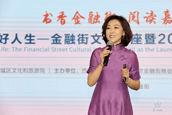金融街街道辦事處主任徐建生,西城區(qū)文化與旅游局工會主席王來明,金融街商會秘書長、金融街書局執(zhí)行董事兼總經(jīng)理沈宏昌,中非產(chǎn)能合作基金綜合行政總監(jiān)詹旭,北京農(nóng)商銀行總行機(jī)關(guān)工會主席毛冉輝,北京百萬莊圖書大廈有限公司常務(wù)副總經(jīng)理陳強(qiáng),中國少年兒童新聞出版總社《中國兒童報(bào)》副主編高慧月,北京讀書形象大使、北京金牌閱讀推廣人宸冰老師等來自近50家金融機(jī)構(gòu)及大型企業(yè)集團(tuán)的近100多位閱讀愛好者到場參加了啟動儀式。隨后,北京讀書形象大使、北京金牌閱讀推廣人宸冰為現(xiàn)場嘉賓做了“閱讀成就美好人生”講座。