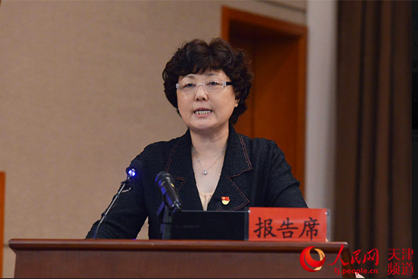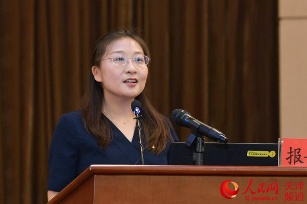 天津市委黨校副教育長兼教務(wù)處處長、教授臧學(xué)英作報(bào)告。北京市委講師團(tuán)供圖