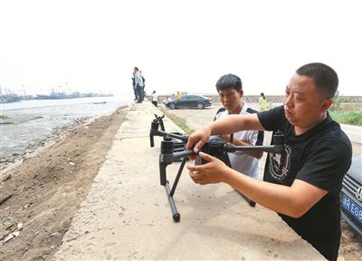 工作人員正在使用無人機對排污口進行排查記者 何沛霖 攝