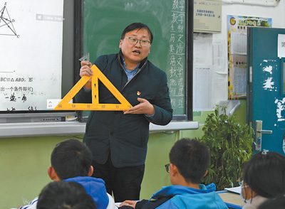 繁忙的管理工作以外,吳智勇主動(dòng)承擔(dān)了初二年級(jí)一個(gè)班的數(shù)學(xué)教學(xué)工作。每個(gè)學(xué)期,他都會(huì)收兩到三名教師作“徒弟”,他說(shuō):“我會(huì)查看他們的教學(xué)計(jì)劃、教學(xué)備課材料,盡量多聽(tīng)他們的課,并在課后進(jìn)行輔導(dǎo)?!敝灰挥锌?,他還會(huì)隨機(jī)聽(tīng)本地教師講的數(shù)學(xué)課,課后進(jìn)行交流。