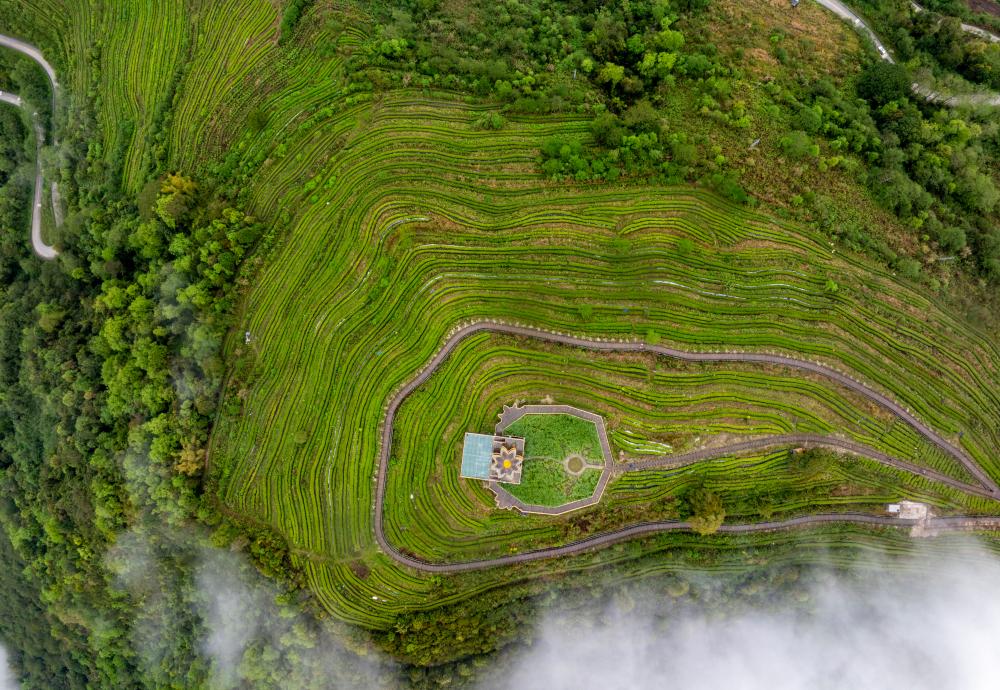 進(jìn)入墨脫,路兩旁、半山腰、云霧間,可見大小不一的茶園。背崩鄉(xiāng)格林村的茶園在群山懷抱中層層疊疊,采茶的村民在云霧縹緲間若隱若現(xiàn)。