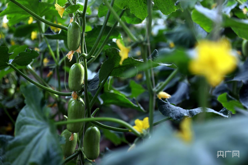 大棚里,黃瓜長(zhǎng)勢(shì)喜人(央廣網(wǎng)記者 唐磊 攝)