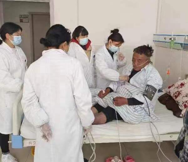 隨后,林旭萍迅速跟隨救護(hù)車到達(dá)現(xiàn)場,患者家屬看見醫(yī)生來了,用著不熟練的漢語說“醫(yī)生,救救他......”通過交流,林旭萍和隨行護(hù)士監(jiān)測生命體征、測血糖,并予以吸氧后,初步考慮是高原反應(yīng)外加呼吸性堿中毒可能,并伴低血糖。在安撫病人及家屬,并予以對(duì)癥處理后,患者轉(zhuǎn)危為安?;颊呒凹覍倬浅8兄x樂山市中醫(yī)醫(yī)院的林旭萍和中藏醫(yī)院的醫(yī)護(hù)人員,對(duì)于林旭萍來說,自己也感受到了在新龍縣中藏醫(yī)院的價(jià)值與目標(biāo)所在,她告訴自己,自己一定能堅(jiān)定地繼續(xù)服務(wù)于西藏人民。