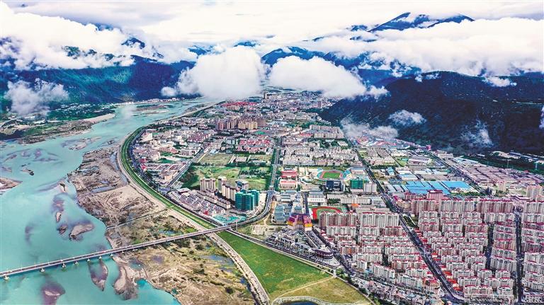 林芝市主城區(qū)俯瞰圖。