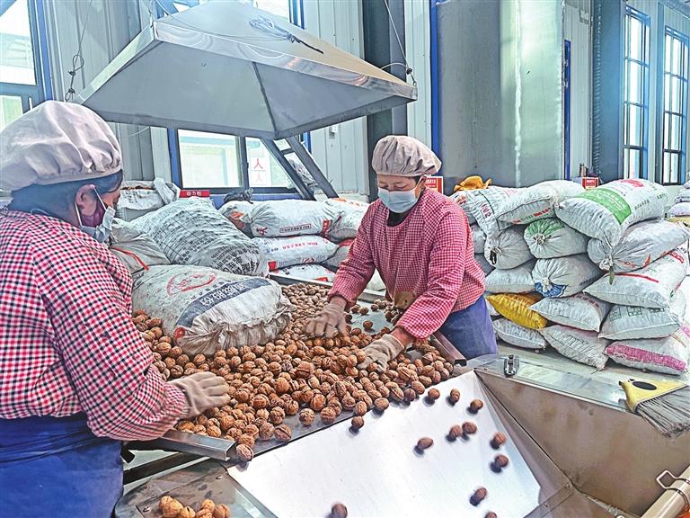 工人們?cè)谔暨x野生山核桃油的原料。圖由福建省援藏工作隊(duì)提供