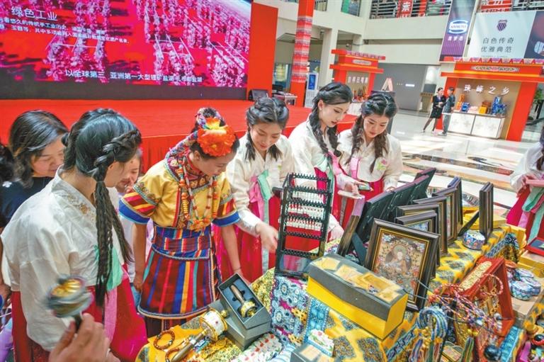 在吉林舉辦的“藏品入吉”展銷會(huì)上,游客在選購(gòu)日喀則特產(chǎn)。