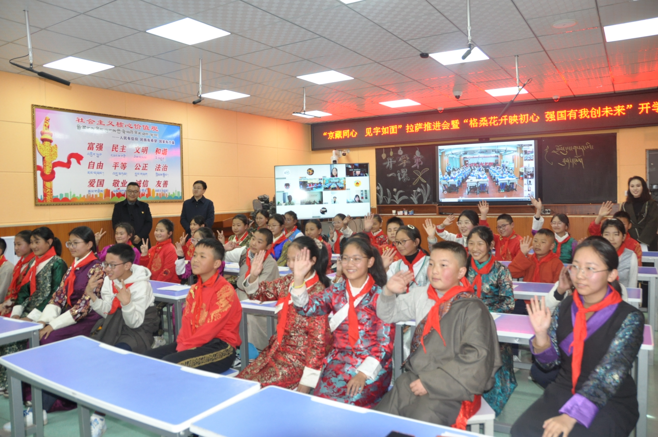 “我長大想當一名消防員”“我長大想當一名特種兵”……3月10日,來自西藏自治區(qū)拉薩市城關(guān)區(qū)海城小學和北京市懷柔區(qū)北房鎮(zhèn)中心小學的兩地師生通過線上直播形式,共上開學第一課。此次活動也是北京市“融鑄式”教育支援協(xié)作的一次生動實踐。