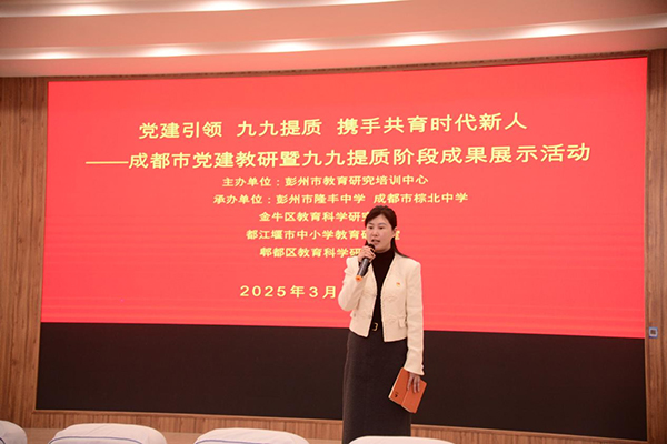 陽春三月,齊聚彭州共教研。為全面貫徹落實黨的二十屆三中全會和全國教育大會精神,系統(tǒng)推進(jìn)黨的教育方針和黨中央決策部署在中小學(xué)得到貫徹落實,堅持“為黨育人、為國育才”。3月25日下午,彭州市隆豐中學(xué)開展成都市黨建教研暨“九九提質(zhì)”階段成果展示活動。