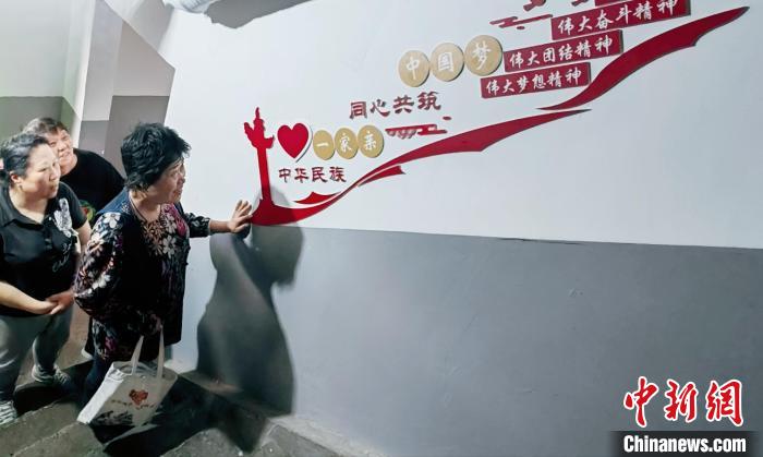 “樓里的每一處設(shè)計,都凝聚著各族居民的智慧?!睆埞葐谈锌瑥臉桥茦苏Z到過道裝飾,居民們?nèi)虆⑴c設(shè)計,樓道里的每句標語都表達著他們心聲。