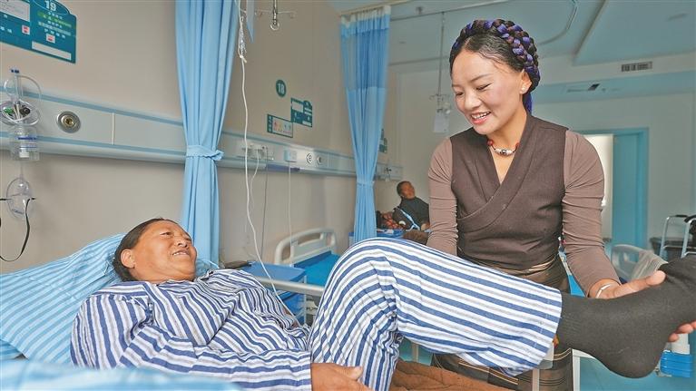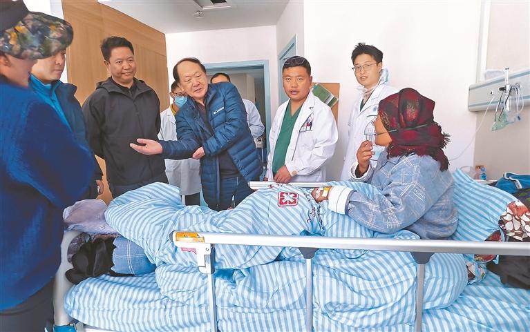 圖為南京市第一醫(yī)院關(guān)節(jié)外科專家團(tuán)隊了解患者術(shù)后康復(fù)情況。格桑倫珠 攝