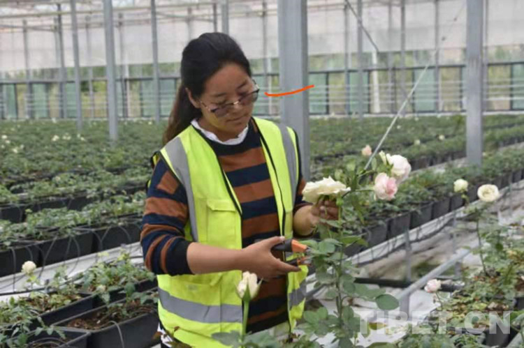 圖為在花棚就業(yè)的大學生正在修剪玫瑰 攝影:拉姆