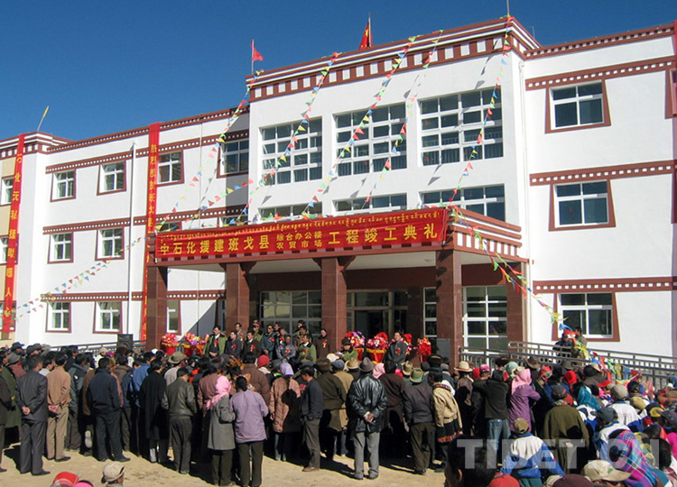 這是由中國石化所援建的班戈縣綜合辦公樓工程竣工典禮儀式(李一超提供,2004年10月18日攝)
