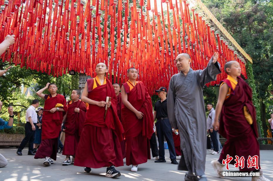 圖為5月18日,西藏少年活佛參學(xué)團(tuán)在杭州靈隱寺參觀學(xué)習(xí)。