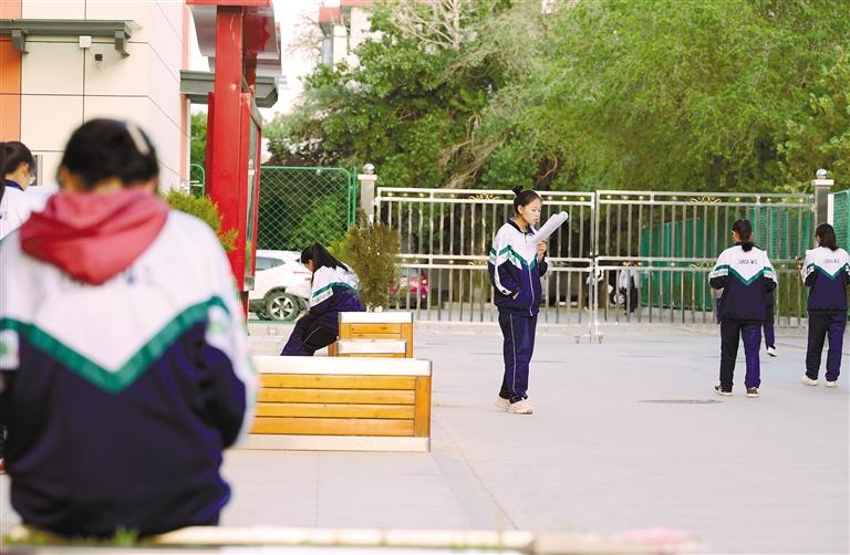 在拉薩中學的校園內,高三學生們抓緊時間復習備考。記者 潘多 攝
