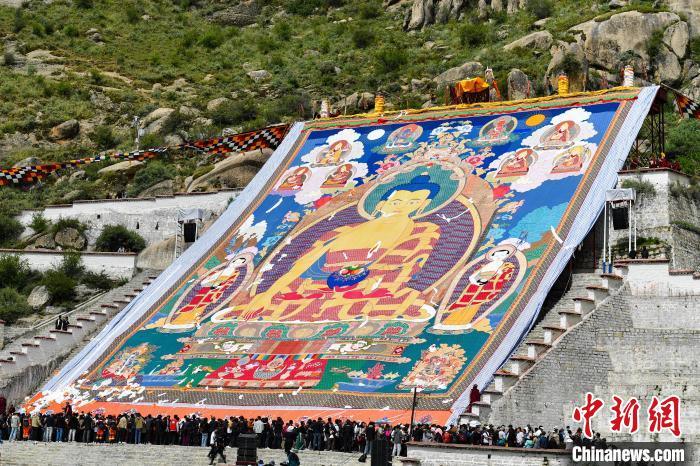 4日是藏歷六月三十日,一年一度的西藏拉薩雪頓節(jié)拉開帷幕?!把睘樗崮?,“頓”意為宴,所以雪頓節(jié)也被稱為“酸奶節(jié)”,已有三百多年歷史。每年的這一天,拉薩哲蚌寺都會舉行盛大的展佛活動,這是拉薩雪頓節(jié)最為重要的傳統(tǒng)活動之一,吸引著成千上萬的朝佛信眾和游客。