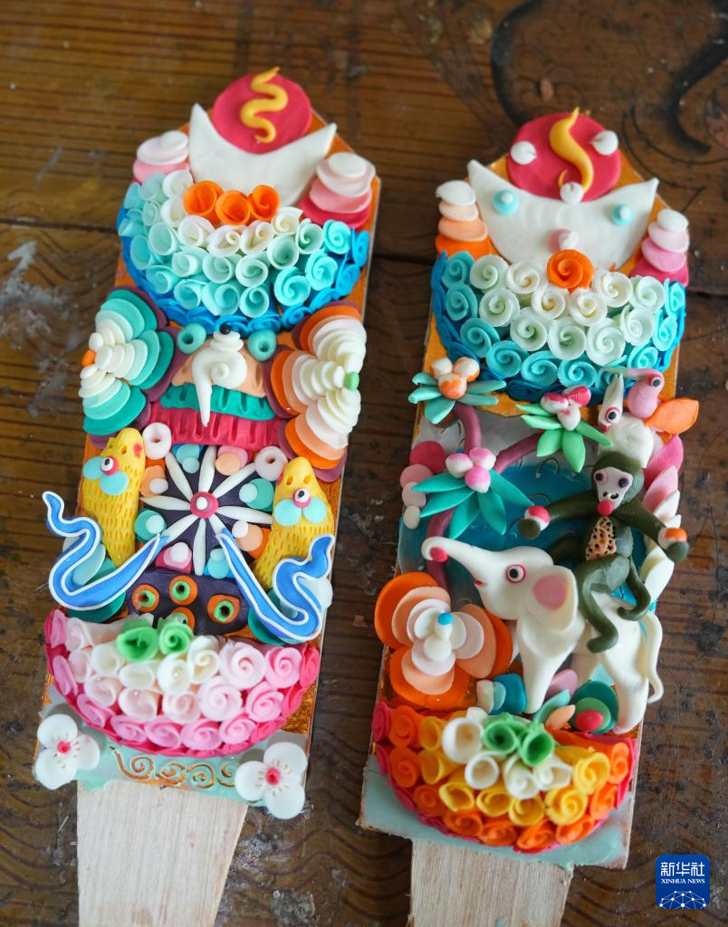 在拉薩市老城區(qū),小學徒在展示剛剛做好的一對酥油花(2月25日攝)。新華社記者 晉美多吉 攝