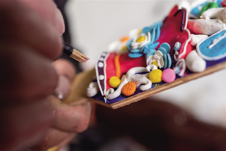 當(dāng)記者聊起如今市面上也有機(jī)器雕刻的酥油花時(shí),師傅羅布次仁停下手中的活,說(shuō)道:“酥油花是千年傳承下來(lái)的瑰寶,講究一年換一新,同樣也講究人們制作時(shí)注入的美好愿望和祝福。早在2013年,它就被列入西藏自治區(qū)級(jí)非物質(zhì)文化遺產(chǎn)名錄。如今雖然出現(xiàn)了機(jī)器雕刻的酥油花,但它們?nèi)绷舜鄠鞯牧α浚瑱C(jī)械復(fù)制不了指尖傳遞的溫度。我們要傳承好這門技藝?!?/p>