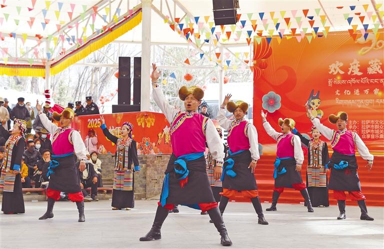 圖為2月28日,“文化進(jìn)萬家”惠民演出活動在拉薩市宗角祿康公園舉行,精彩紛呈的歌舞節(jié)目輪番上演。記者 旦增蘭澤 攝