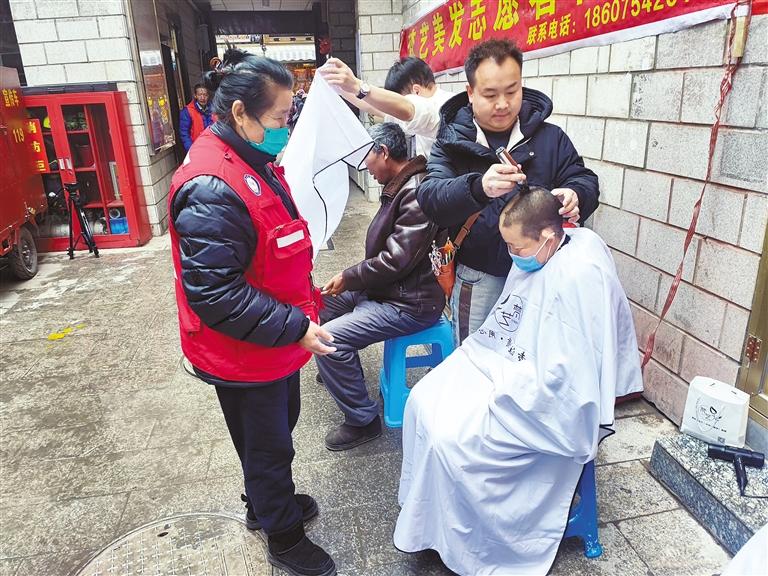 圖為志愿者為居民理發(fā)。記者 鹿麗娟 攝