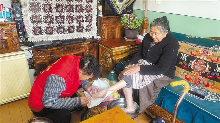 圖為志愿者為老人修腳。記者 鹿麗娟 攝