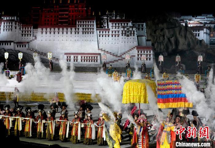 圖為《文成公主》大型實(shí)景劇第十三季演出現(xiàn)場。中新社記者 李林 攝