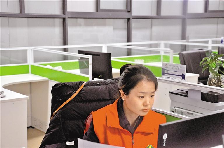 旦增德吉在拉薩市三級(jí)政務(wù)服務(wù)大廳一樓辦公點(diǎn)辦公。記者 王超 攝