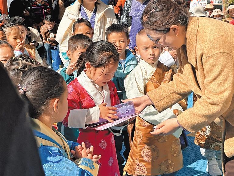 圖為工作人員為答對(duì)問題的小朋友頒發(fā)獎(jiǎng)品。記者 拉巴桑姆 攝