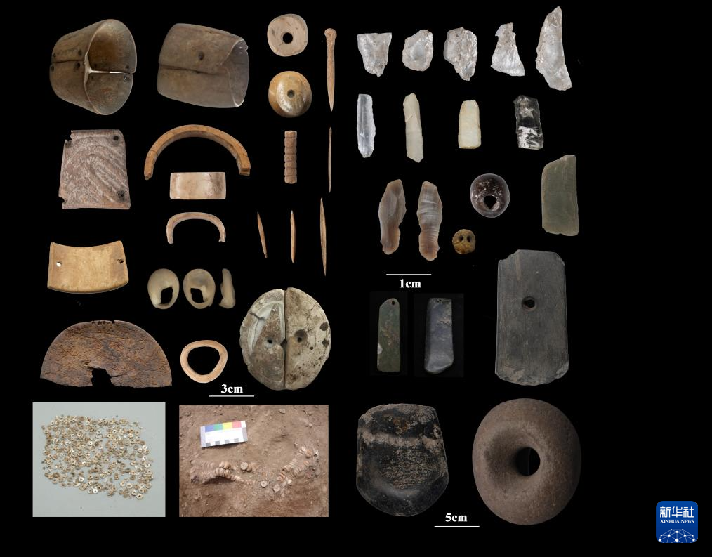 瑪不錯(cuò)遺址第一期出土遺存典型骨器、石器、蚌器、滑石珠等。(西藏自治區(qū)文物保護(hù)研究所供圖)
