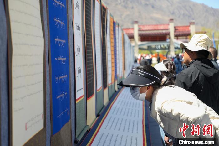 圖為4月21日,此次活動(dòng)的書畫作品展覽。次仁羅布 攝