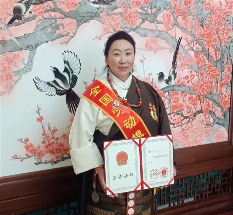 圖為米多展示“全國勞動模范”榮譽證書(資料圖片)。