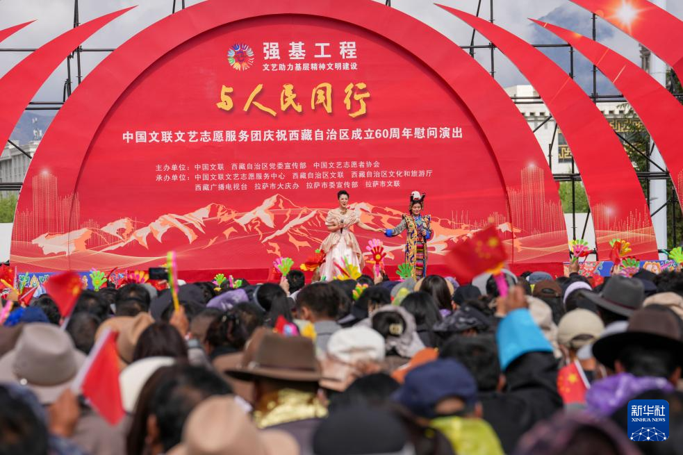 5月25日,由中國文聯(lián)、西藏自治區(qū)黨委宣傳部、中國文藝志愿者協(xié)會主辦的“與人民同行”中國文聯(lián)文藝志愿服務團慶祝西藏自治區(qū)成立60周年慰問演出在位于拉薩的西藏會展中心廣場舉行。
