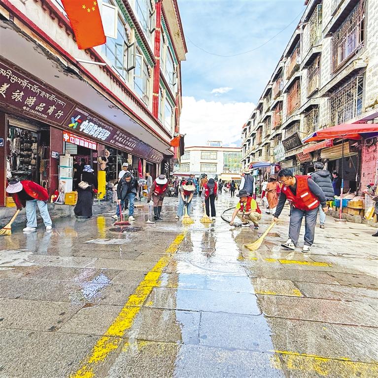 近日,拉薩市城關區(qū)八廓街道沖賽康社區(qū)黨總支開展“黨建引領聚合力,清潔家園促文明”環(huán)境整治活動。30余名黨員志愿者、駐社區(qū)工作隊員及網(wǎng)格員分工協(xié)作,手持清潔工具深入大街小巷,清理衛(wèi)生死角、鏟除墻面小廣告,并對廣場地面進行高壓沖洗?;顒右浴包h建紅”引領“生態(tài)綠”,推動基層治理與文明城市創(chuàng)建深度融合,為社區(qū)居民營造整潔宜居的生活環(huán)境。